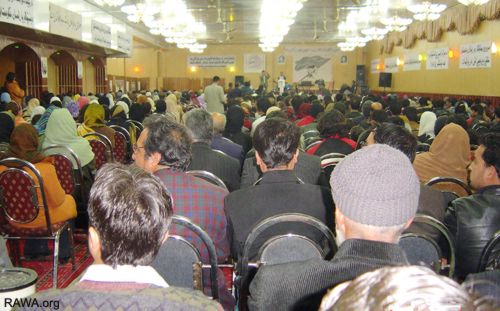 Over 1,500 women and men participated in an event organized by RAWA in Kabul to celebrate the International Women’s Day. The participants included a 12-member delegation of RAWA Italian supporters and a large number of journalists and guests.